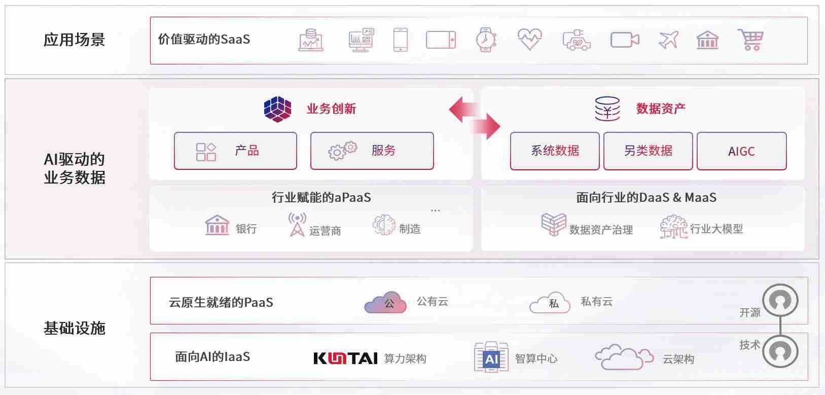 数字时代,,围绕企业数字化转型的关键要素,,jackpot数码开创性的提出数云融合战略和技术体系框架,,,着力在云原生、、数字原生、、、AI原生和信创产业上架构产品和服务能力,,,,为处在不同数字化转型阶段的快消零售、、汽车、、、、金融、、、、医疗、、、政企、、、教育、、、、运营商等行业客户提供泛在的敏捷IT能力和融合的数据驱动能力,,构建跨界融合创新的数字业务场景和新业务模式,,助力企业级客户建立面向未来的核心能力和竞争优势,,,,全面推动社会的数字化、、、智能化转型升级。。。。